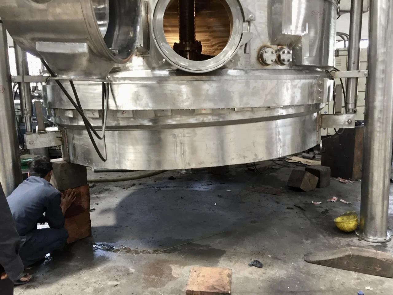 Photograph provided by a client while assembling the equipment. Here unguided freeload is seen tilted. Note, piston rod of hydraulic cylinder on the left has extended more compared with on the right - which hasn't left position. Here the freeload is under free-fall without adequate counter. See the video below and read on to understand how it can be handled.